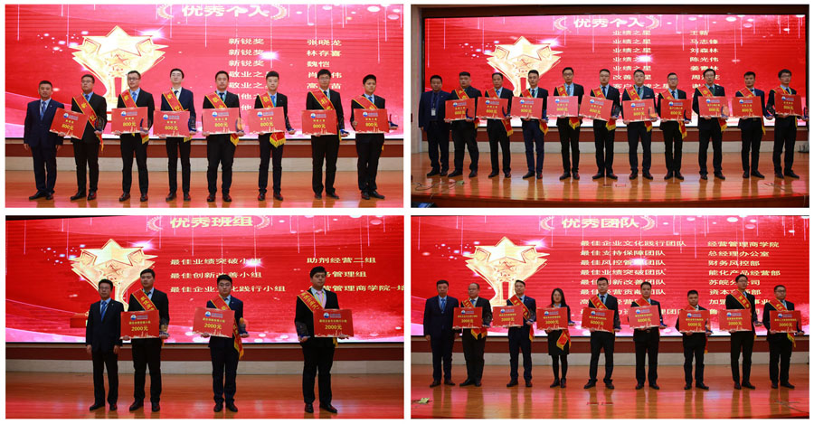 經(jīng)營管理商學(xué)院院長邵金光宣讀2019年度表彰決定。2019年共評出19個(gè)獎(jiǎng)項(xiàng),其中優(yōu)秀團(tuán)隊(duì)獎(jiǎng)8項(xiàng)、優(yōu)秀班組3項(xiàng)、優(yōu)秀個(gè)人獎(jiǎng)7項(xiàng),共有9個(gè)團(tuán)隊(duì)小組及17名員工憑借突出貢獻(xiàn)、驕人業(yè)績以及優(yōu)異工作表現(xiàn)獲得獎(jiǎng)項(xiàng),相關(guān)領(lǐng)導(dǎo)予以頒獎(jiǎng)。