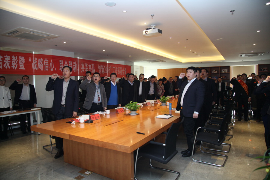 最后,公司全體人員進(jìn)行宣誓:愛崗敬業(yè),誠實(shí)守信,戰(zhàn)略信心,務(wù)實(shí)拼搏,創(chuàng)新思維,團(tuán)結(jié)協(xié)作,開拓進(jìn)取,聯(lián)合聯(lián)動,搭建平臺,共享共贏,以客戶心為心,回報(bào)股東,奉獻(xiàn)社會!2016年,公司必將上下同欲,團(tuán)結(jié)一心,繼往開來,再創(chuàng)輝煌!