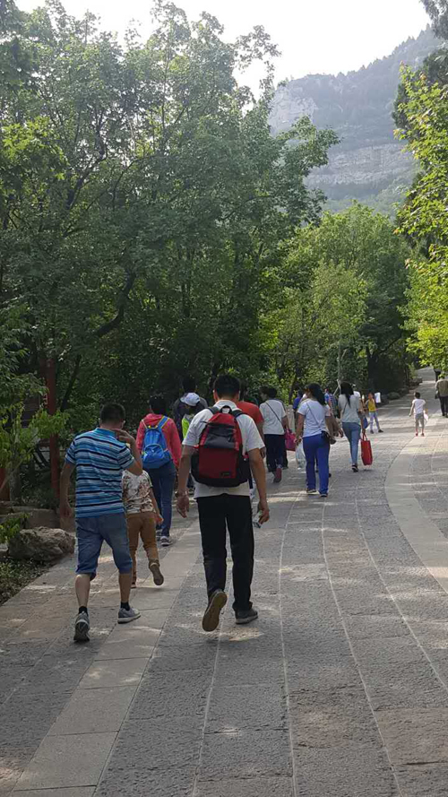 上午八點半,爬山隊伍集合完畢,大家精神抖擻,一起出發(fā)吧!
