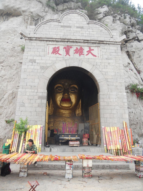 在大佛頭前月臺上,掉回頭來,陡然發(fā)現(xiàn),車水馬龍的濟南城,就在這圈青山的臂膀里躺著。而眼前這尊8米高的石佛頭像,雕刻細膩,面容圓潤,法相端莊,雄偉壯觀。
