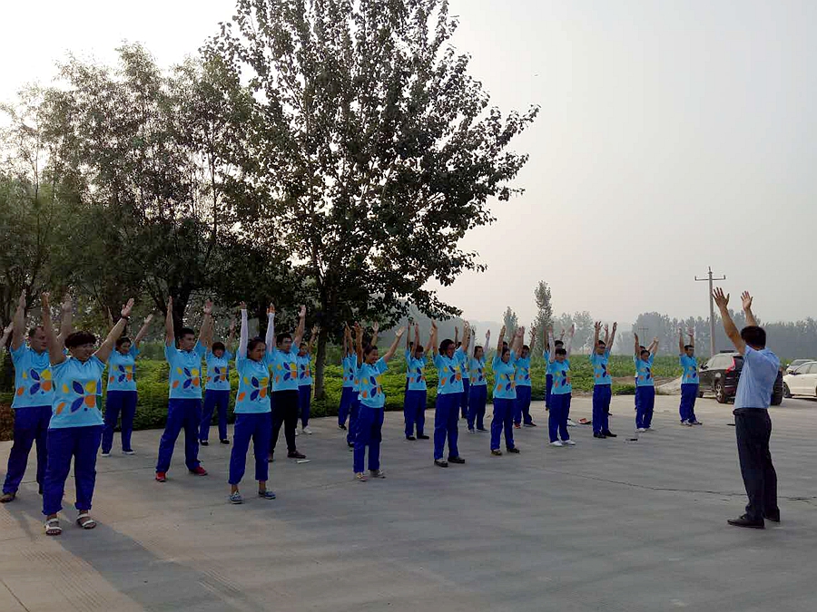 學(xué)員們在培訓(xùn)基地做早操,做拓展游戲,鍛煉身體,熔煉團(tuán)隊。